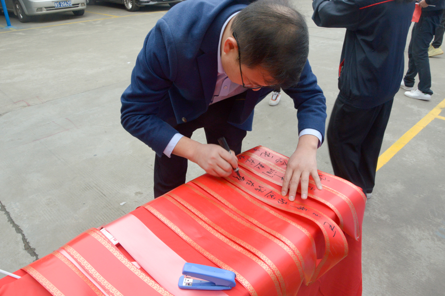 ▲綠志島總經(jīng)理賴高平先生為嘉賓寫花籃語
